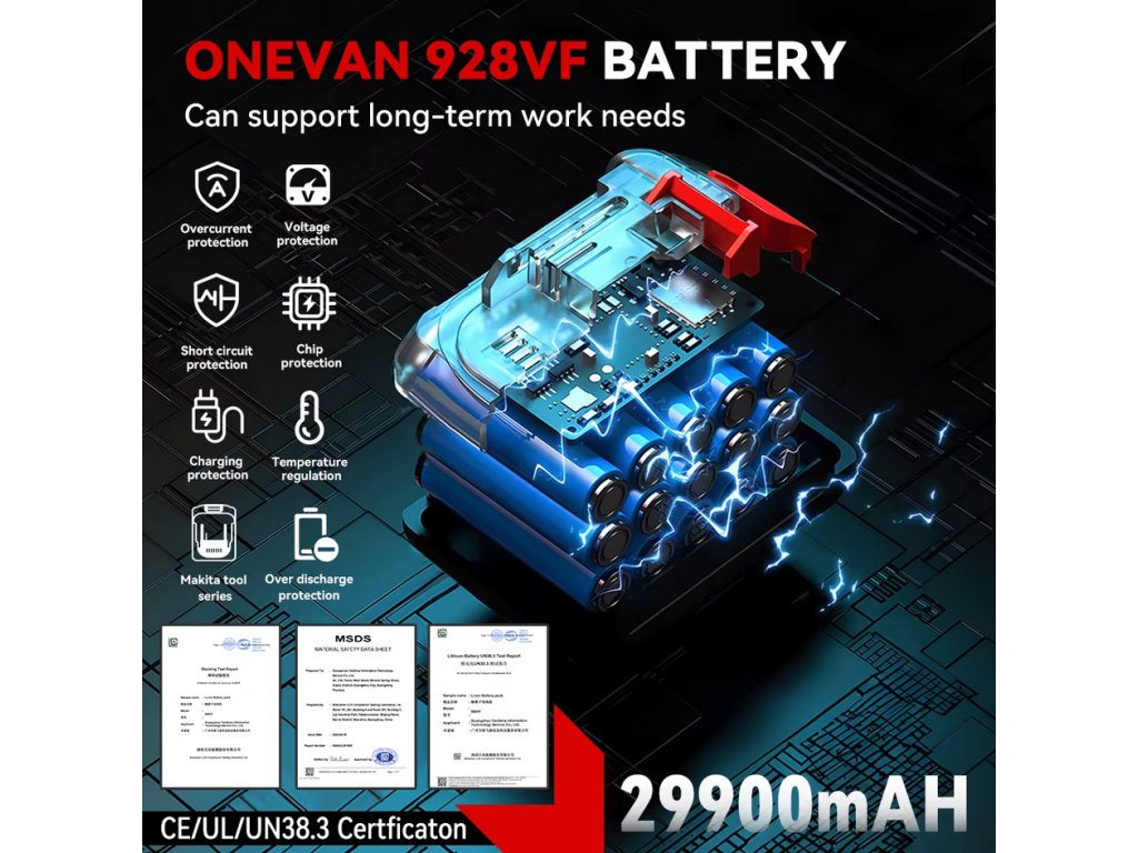 Široká kompatibilita : Kompatibilné so všetkým akumulátorovým náradím ONEVAN 18V a zameniteľné s rôznymi modelmi pre väčšie pohodlie.