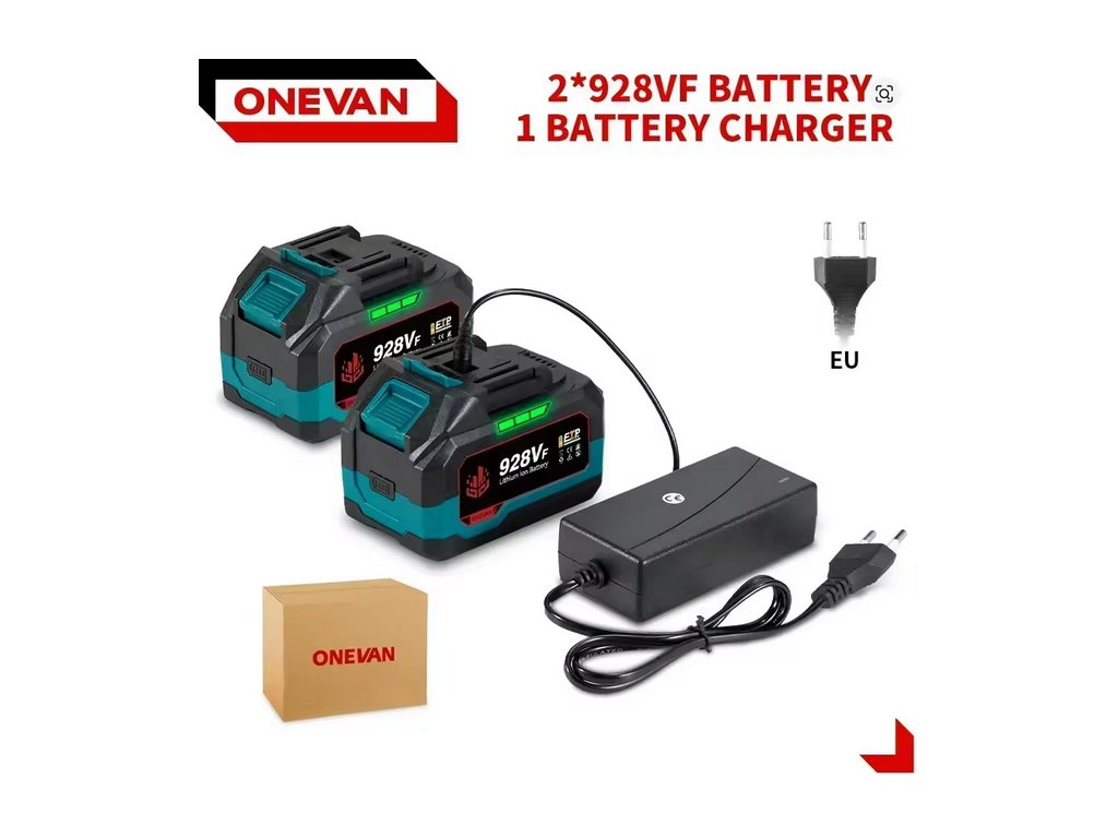 2 ks ONEVAN 928Vf 6Ah 18V-21V Nabíjateľná lítium-iónová batéria 22900mAh / s nabíjačkou a BMS ochranou