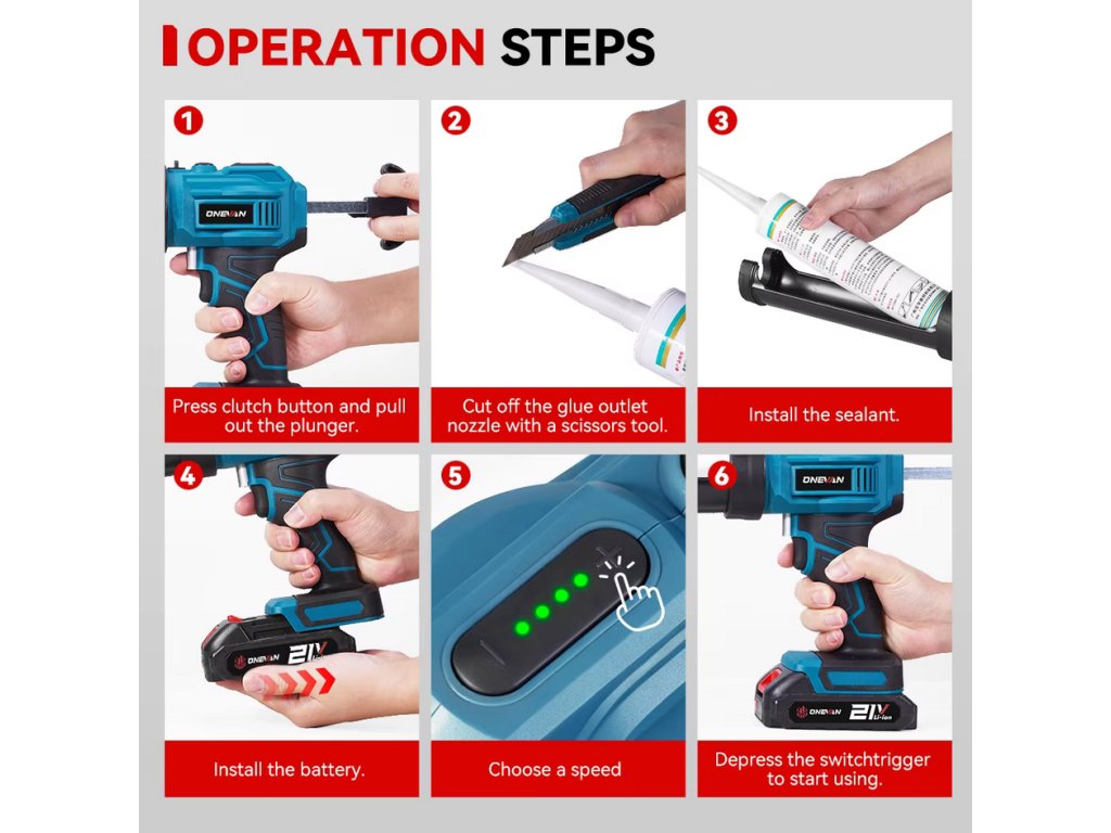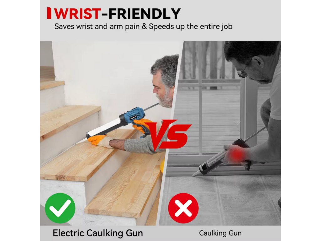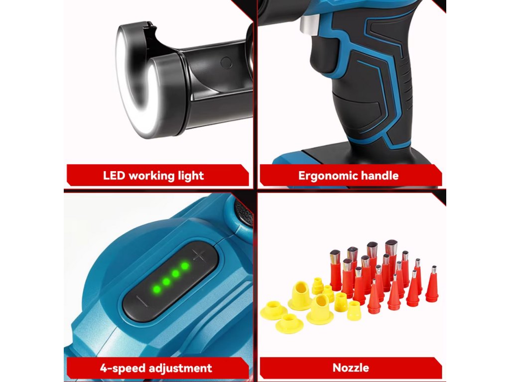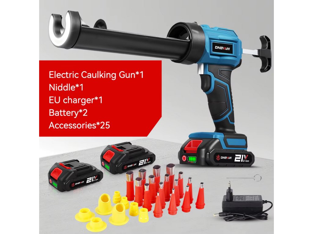 Dodáva sa s 25 kusmi príslušenstva – 16 vymeniteľnými tryskami, 8 odolnými základňami a 1 čistiacim špendlíkom – čo vám poskytne všetko, čo potrebujete na rôzne tesniace úlohy, ako je renovácia kúpeľne, montáž okien a vyplnenie medzier medzi dlaždicami.