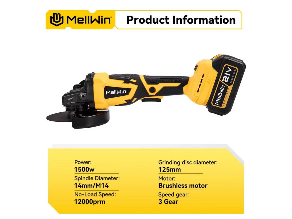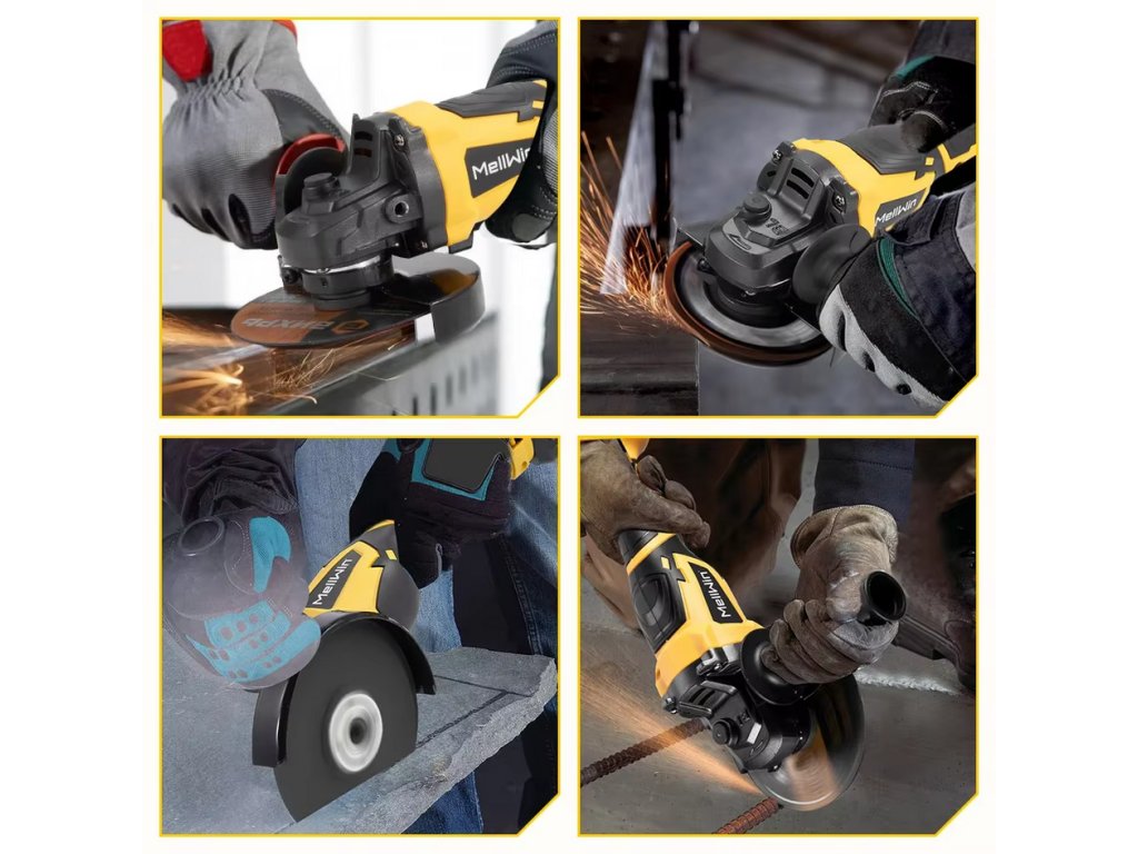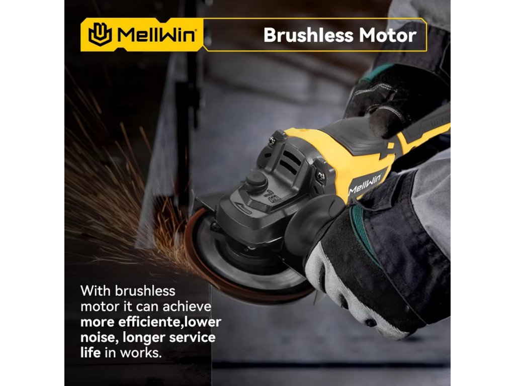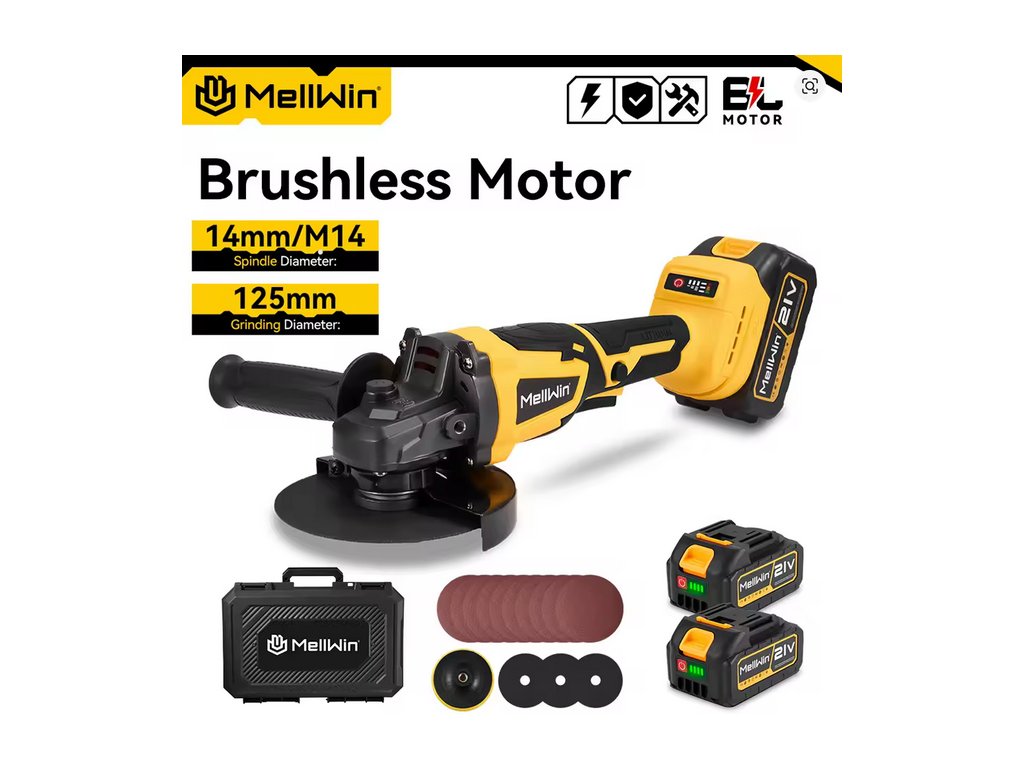 Bezuhlíková uhlová brúska OneVan Mellwin 125 mm M14 vhodná pre batériu MAKITA 18V + 14 ks doplnkov v cene