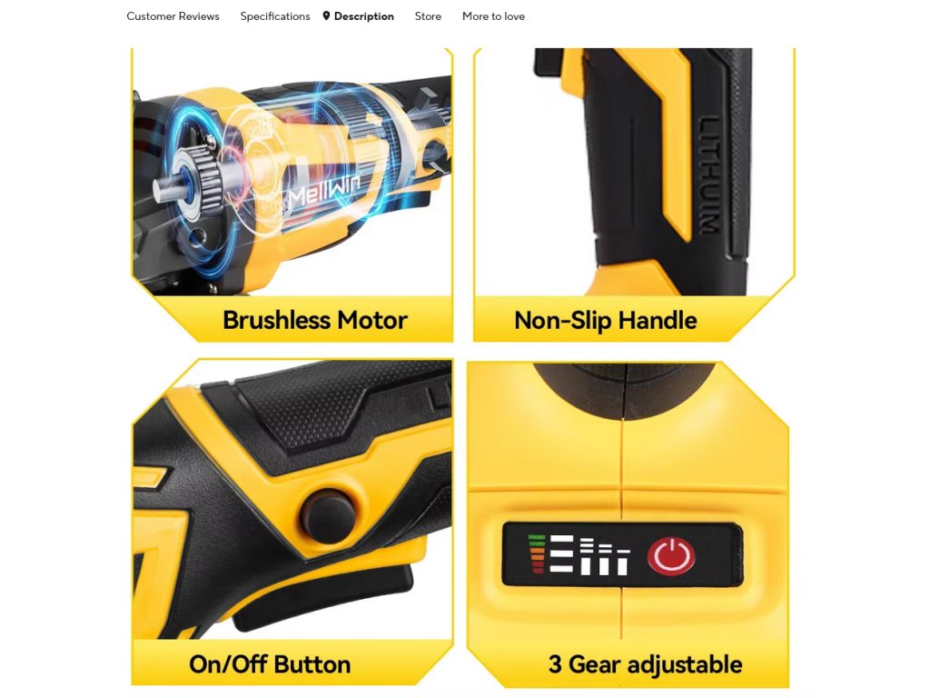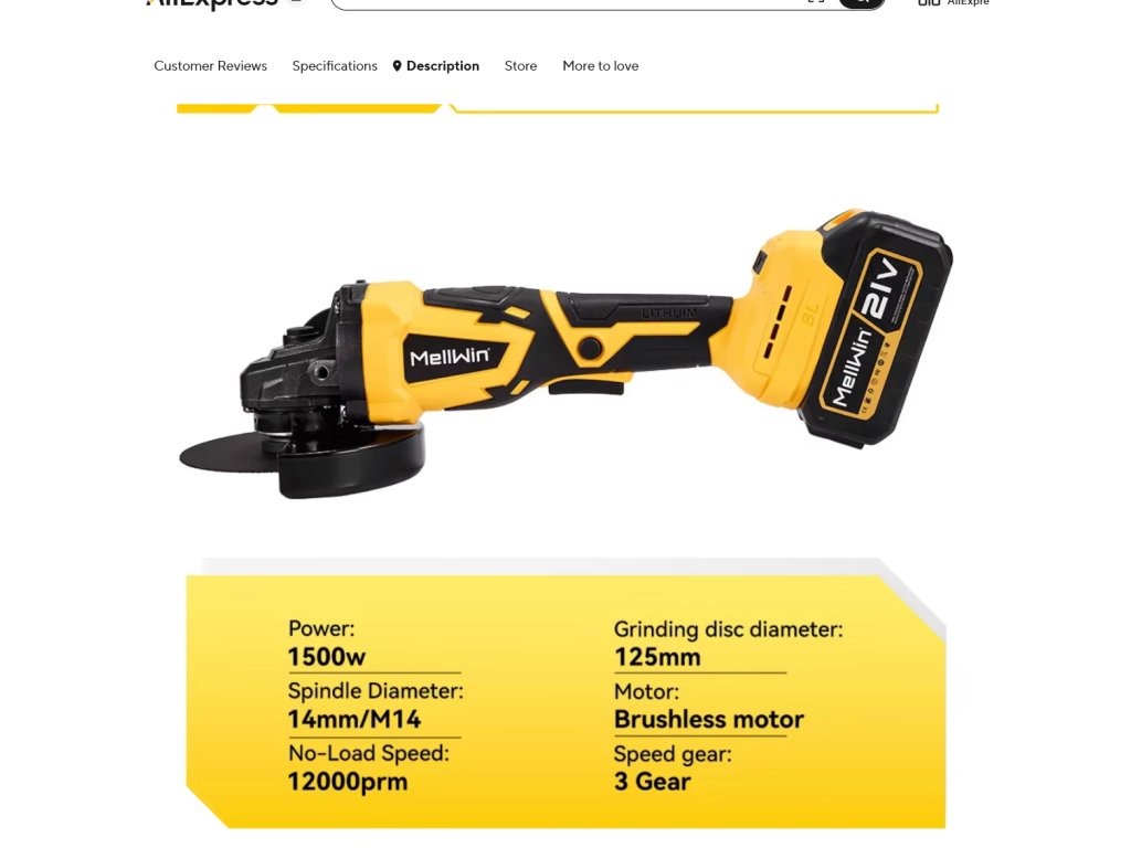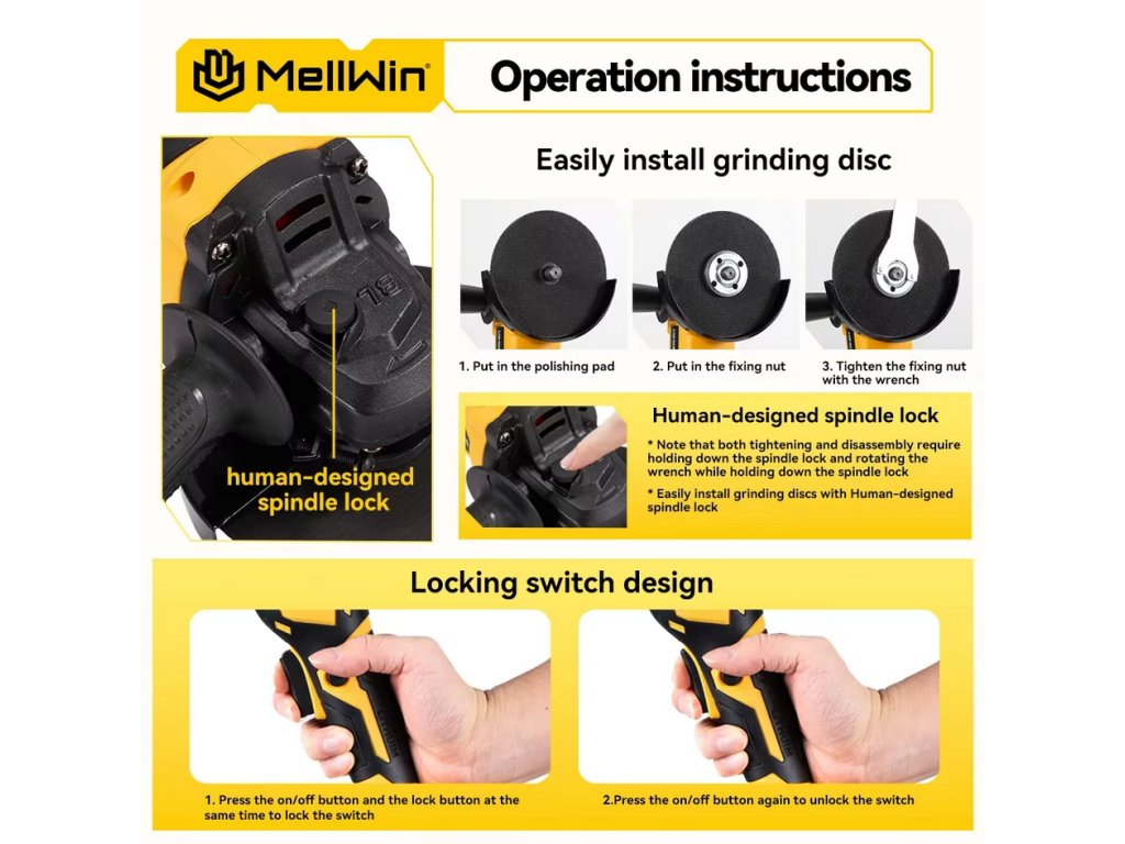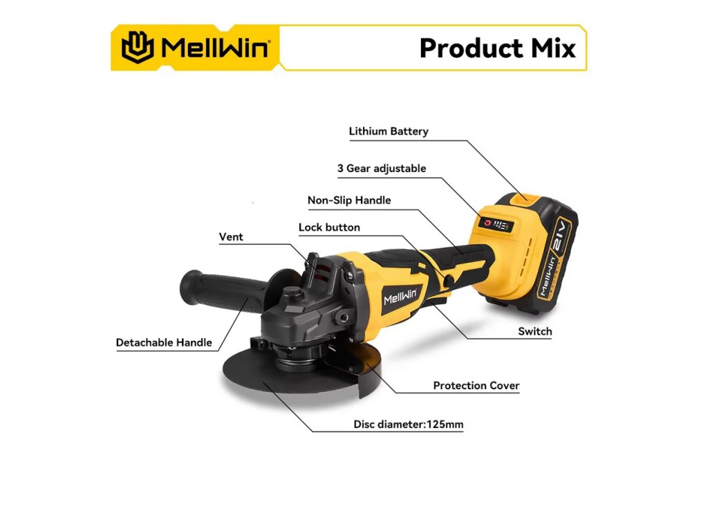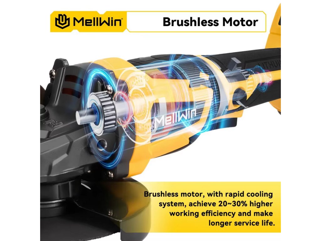 Bezuhlíková uhlová brúska OneVan Mellwin 125 mm M14 vhodná pre batériu MAKITA 18V + 14 ks doplnkov v cene