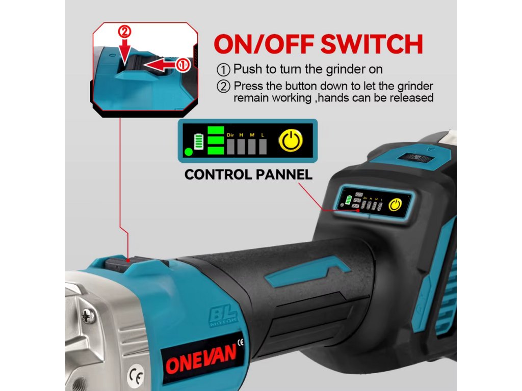 Elektrická Uhlová Brúska ONEVAN 125 Mm je vhodná pre batériu Makita 18V + kotúče ZADARMO ! 21V 4Ah batérie, nabíjačka