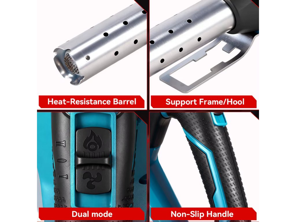 ONEVAN 800℃ Elektrická teplovzdušná pištoľ, fén 400W Zapaľovač s ohňom, multifunkčný domáci nástroj vhodný pre batérie Makita 18V