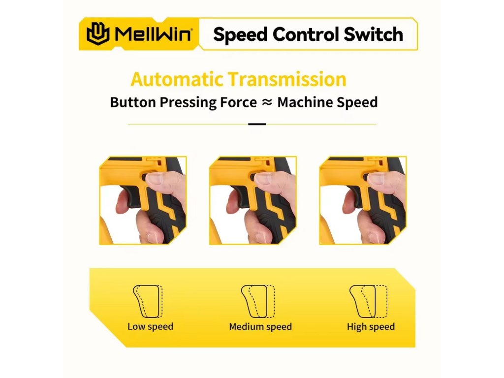 - Plynule meniteľná rýchlosť, princíp automatickej prevodovky, prepínač ovláda otáčky hriadeľa a krútiaci moment stroja