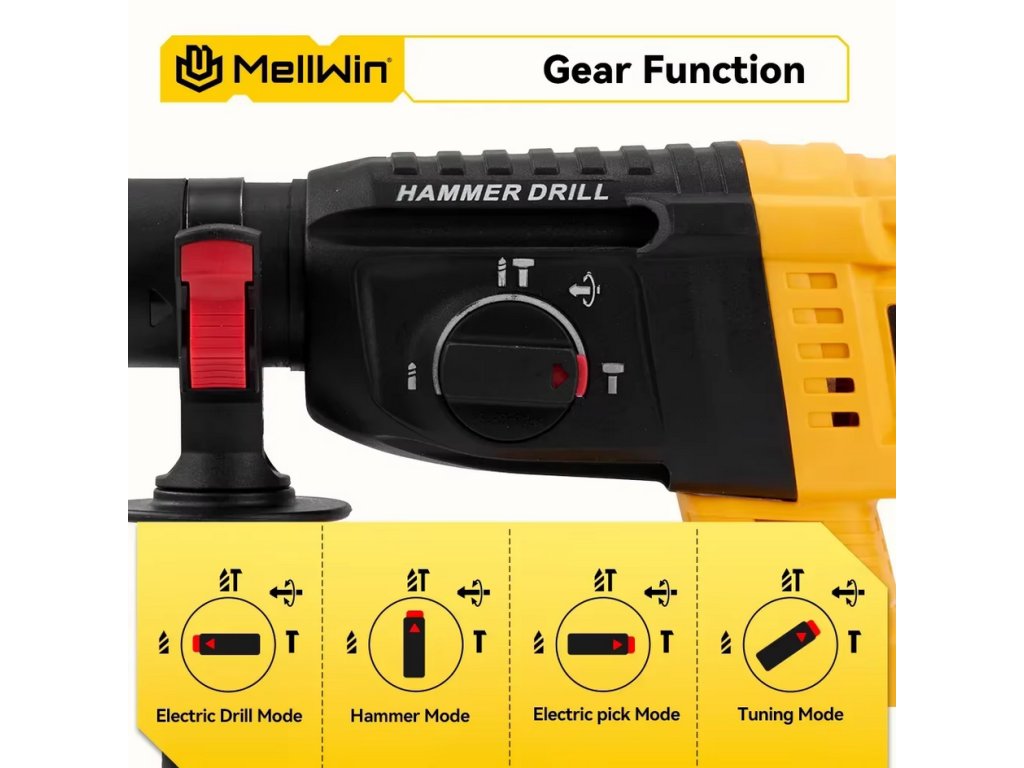 - Všestranné -Elektrické kladivo štyri funkcie v jednom, funkcia kladiva/vŕtania/sekania
