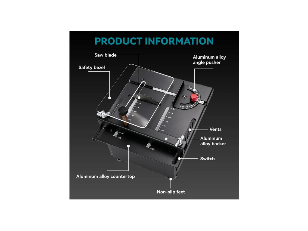 Používanie na stabilnom povrchu: Pred použitím umiestnite miniatúrnu stolovú pílu na rovný a stabilný pracovný stôl.