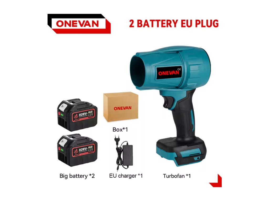 Ručný SUPER TURBO FÉN, Fúkač 200m/s 2000W 2 x batéria. Vhodný na sušenie auta a vhodný pre batériu MAKITA 18V, verzia výkonnejšia batéria 928Vf 21V