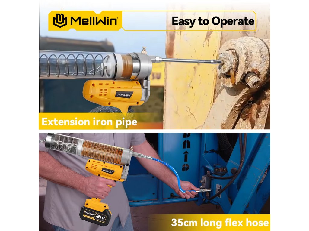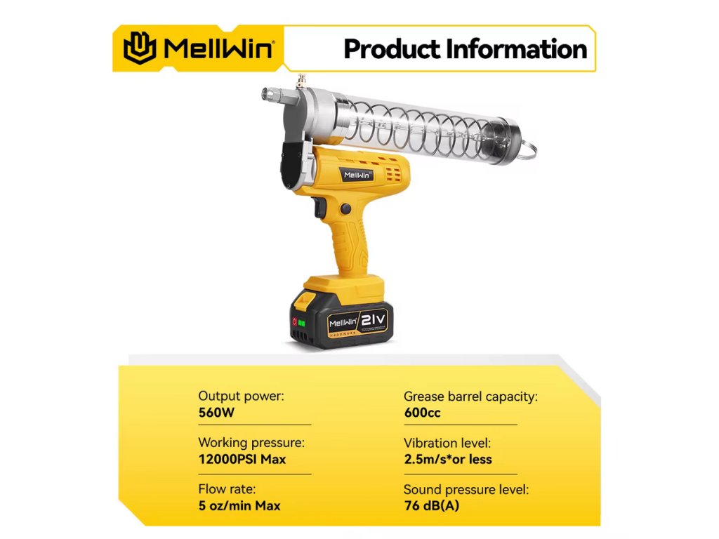 Bezdrôtové pohodlie a dlhá prevádzka – Táto bezdrôtová mazacia pištoľ je poháňaná vysokoúčinným 560 W motorom a dvoma nabíjateľnými batériami, vďaka čomu budete v pohybe bez zamotaných hadíc alebo častého nabíjania.