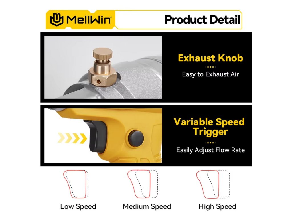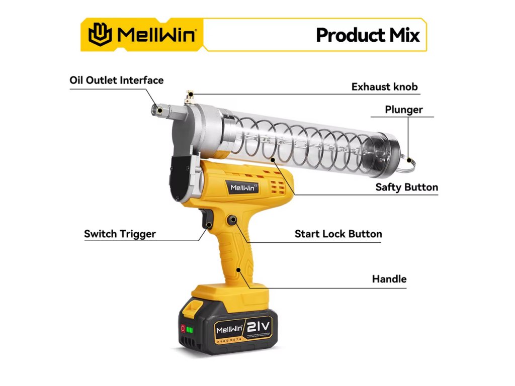 Rýchly a konzistentný tok maziva – Dodáva až 140 ml/min pre rýchle a presné mazanie, čo vám pomáha skrátiť prestoje a zlepšiť efektivitu práce v teréne alebo dielni.