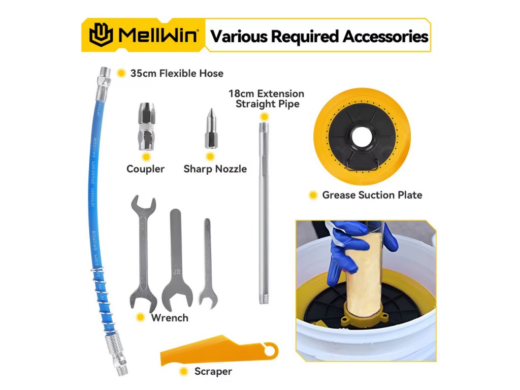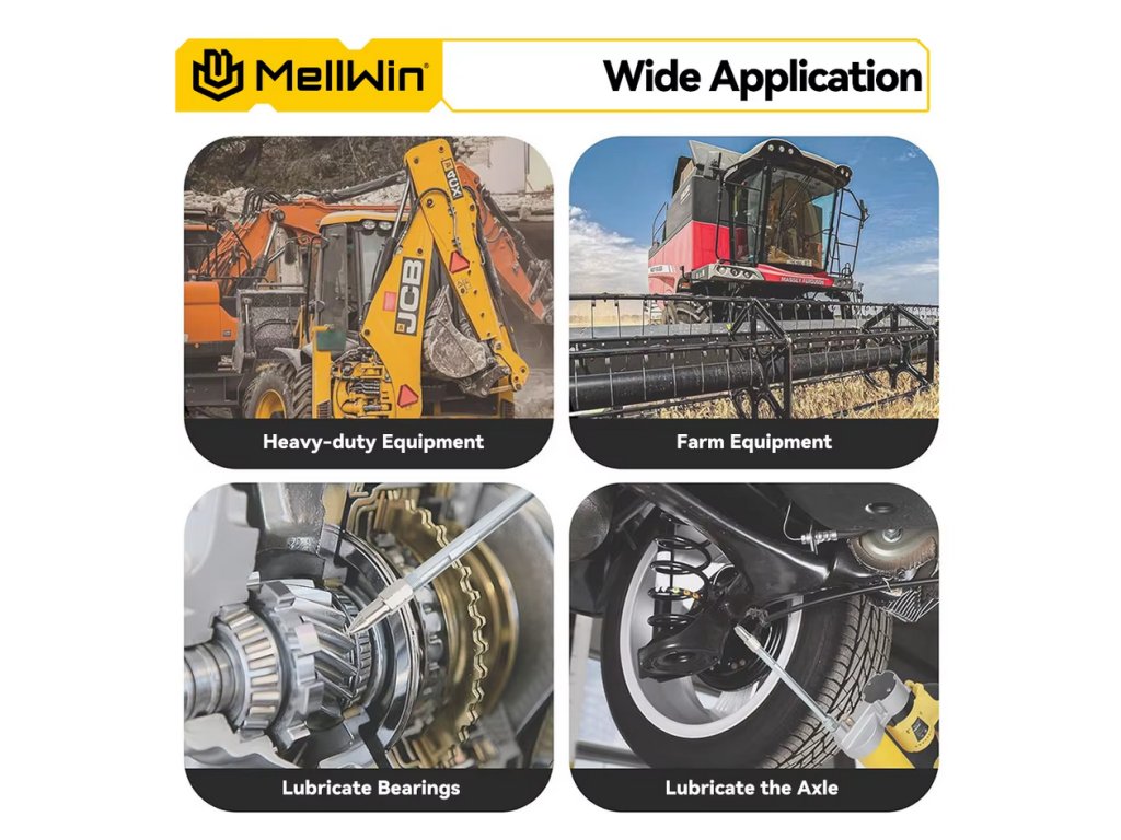 Bezkonkurenčný výkon pre náročné úlohy – Poradí si aj s tými najodolnejšími mazacími armatúrami s pracovným tlakom až 12 000 PSI, ideálny pre ťažké stroje, nákladné vozidlá, poľnohospodárske zariadenia a priemyselnú údržbu.