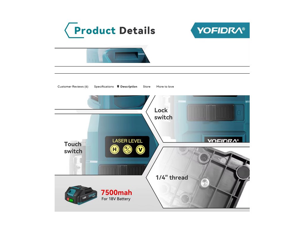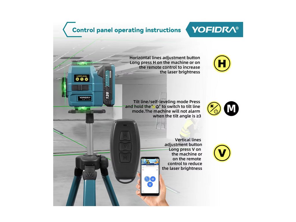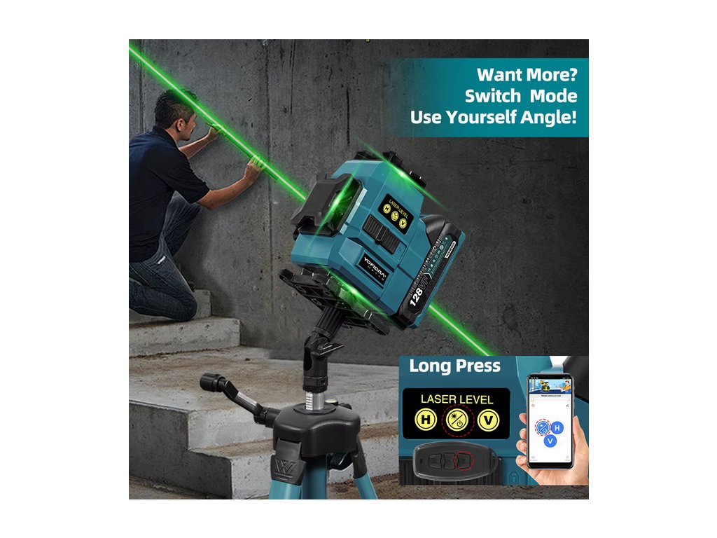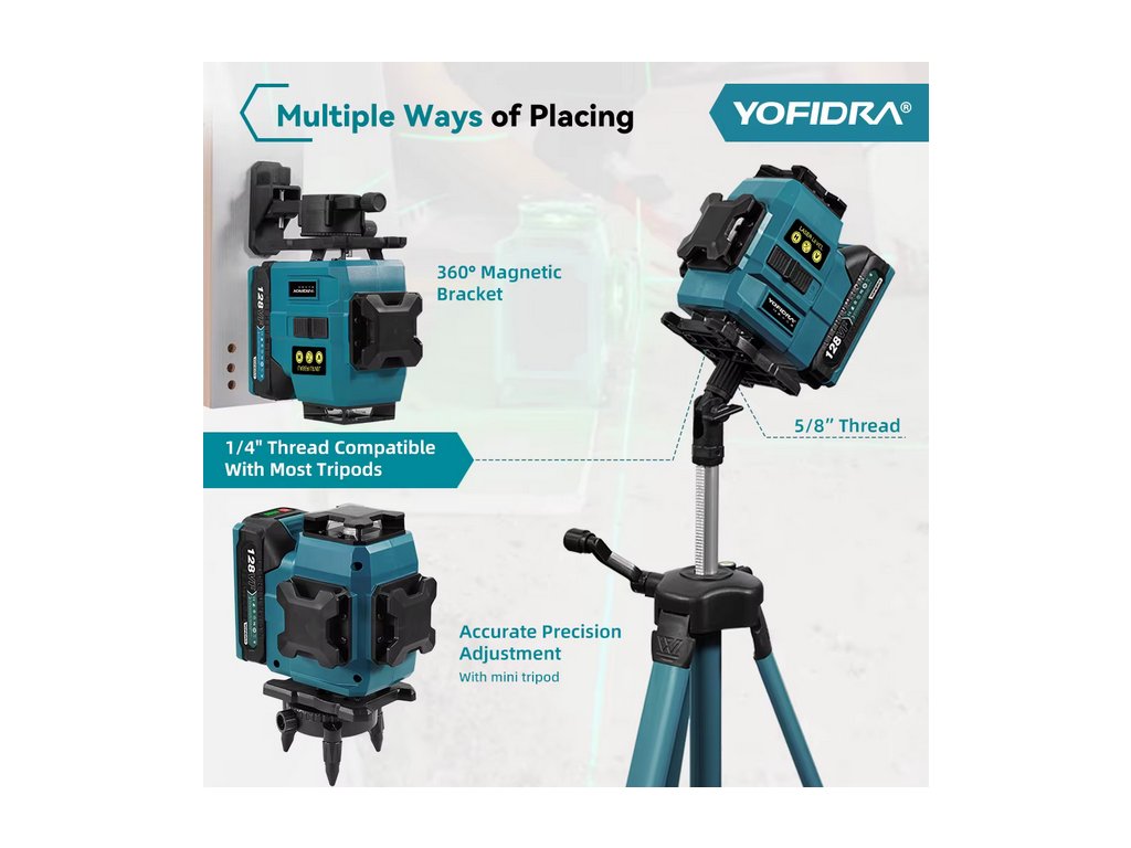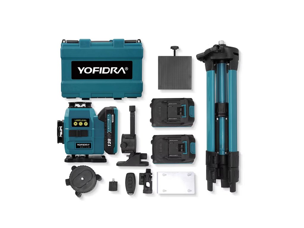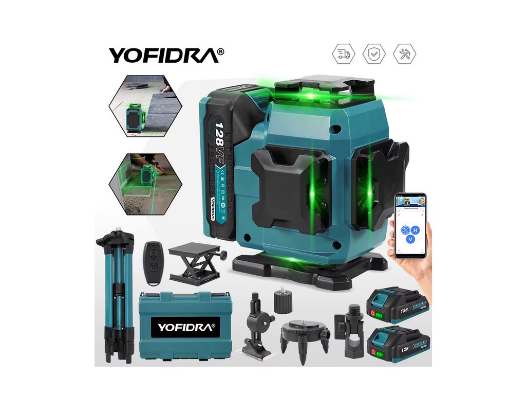 YOFIDRA 16 riadkov 4D laserová vodováha automatická 360° horizontálna vertikálna samonivelácia Ultra výkonný zelený lúč.Vhodný pre batériu MAKITA 18V