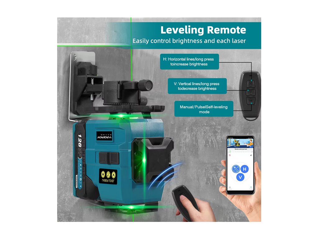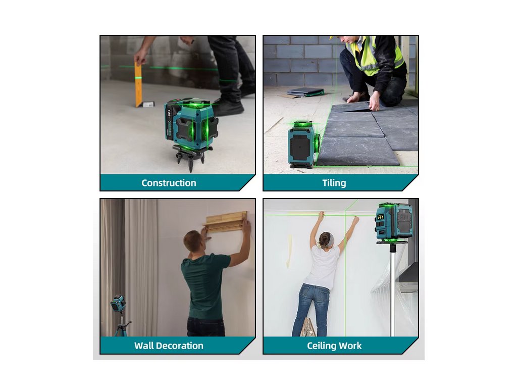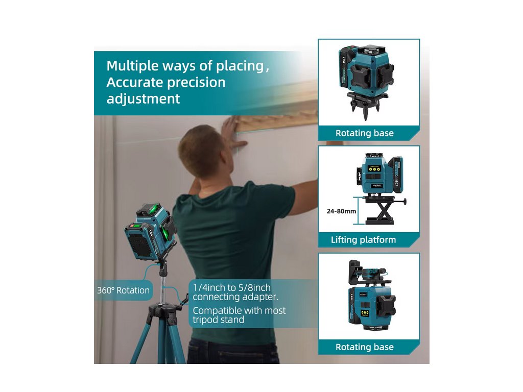 16-riadkový zelený laser – Poskytuje vysoko viditeľné lúče pre presné nivelovanie.