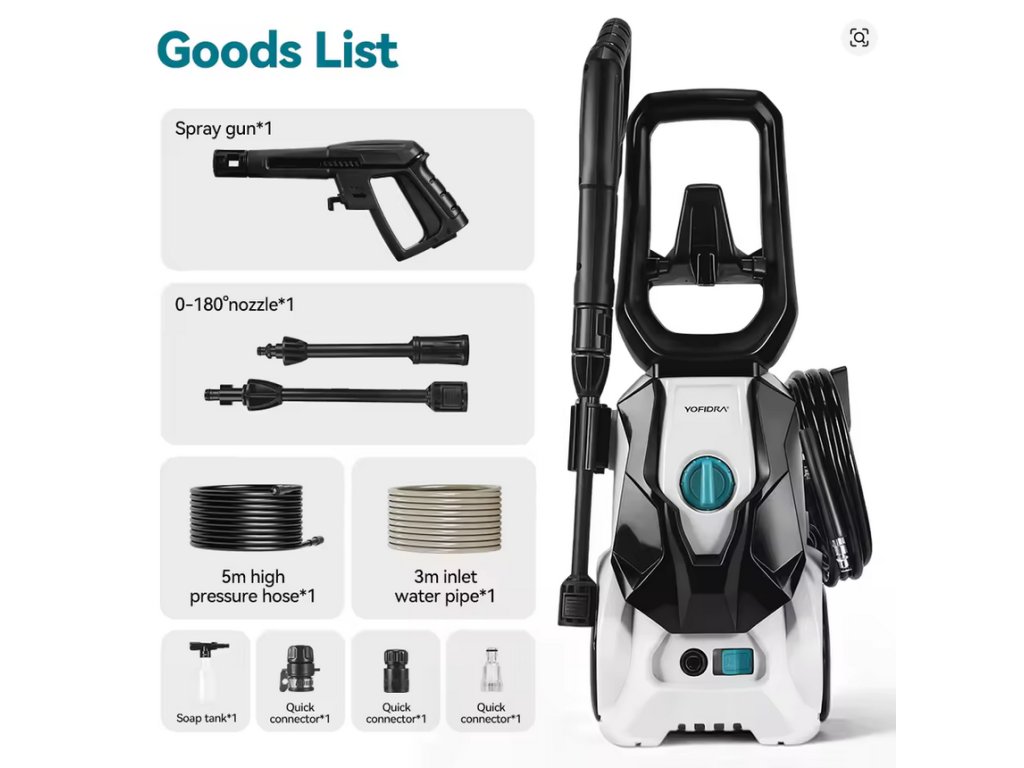 OneVan / YOFIDRA 2 in 1 250Bar 2500W 220V elektrická vysokotlaková pištoľ , šikovných rozmerov s nastaviteľnou tryskou 180°,vhodná na napájnie z vodovodu a nádob